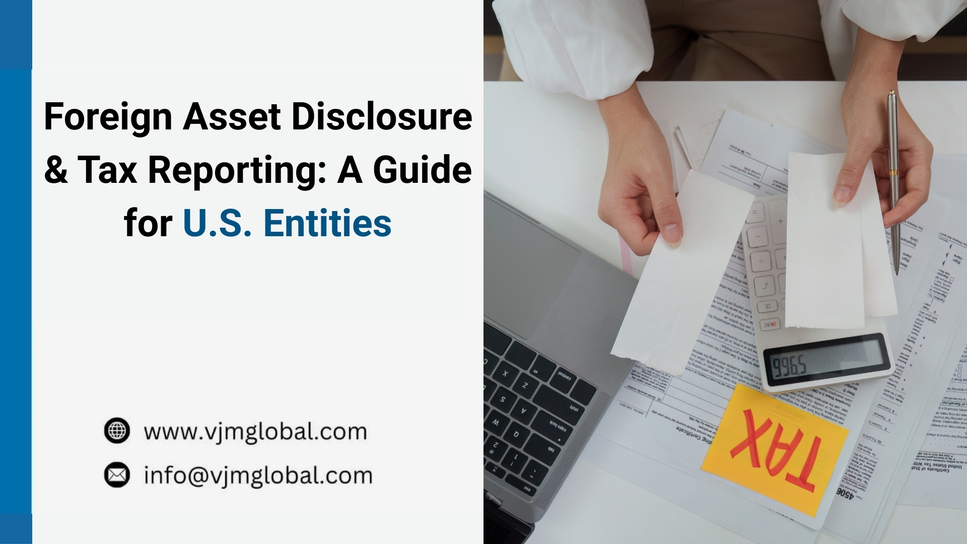 Missing a foreign asset disclosure deadline or making errors can lead to costly penalties. VJM Global specializes in helping U.S. businesses and investors manage the complexities of FBAR, Form 8938, and other foreign asset reporting requirements. With expertise in cross-border tax compliance and audit support, we ensure your disclosures are accurate and timely, keeping your operations fully compliant with IRS regulations. Get started today.